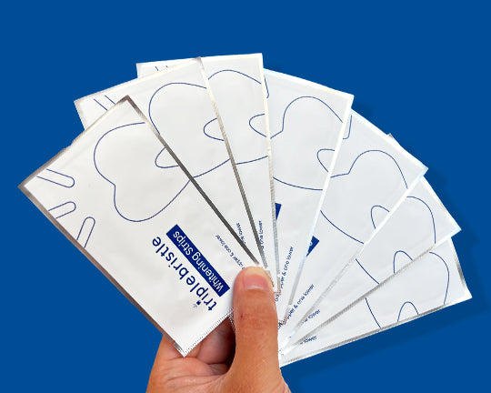 Every order includes free whitening strips + free shipping — no codes, no minimums.